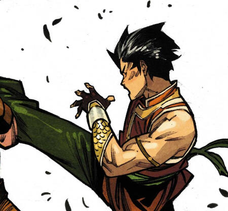 As the son of the criminal mastermind Zheng Zu, Shang-Chi—who believed his father to be a good man—was trained from an early age to become the ultimate martial artist. When sent on a mission to assassinate one of his father’s enemies, he learned the truth and vowed to destroy his father’s criminal empire instead. After Zheng Zu’s death, Shang-Chi inherited his father’s position as the Supreme Commander of the Five Weapons Society. He also learned that his mother—Jiang Li—hailed from the pocket dimension Ta Lo, and that her father—Chieftain Xin—wanted to destroy Shang-Chi’s entire family and take possession of the mystical Ten Rings. (Info credit to Marvel Multiverse character sheet)